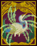 8X10 inch print of my Art Nouveau Great Egret Painting, printed on glossy photo paper.