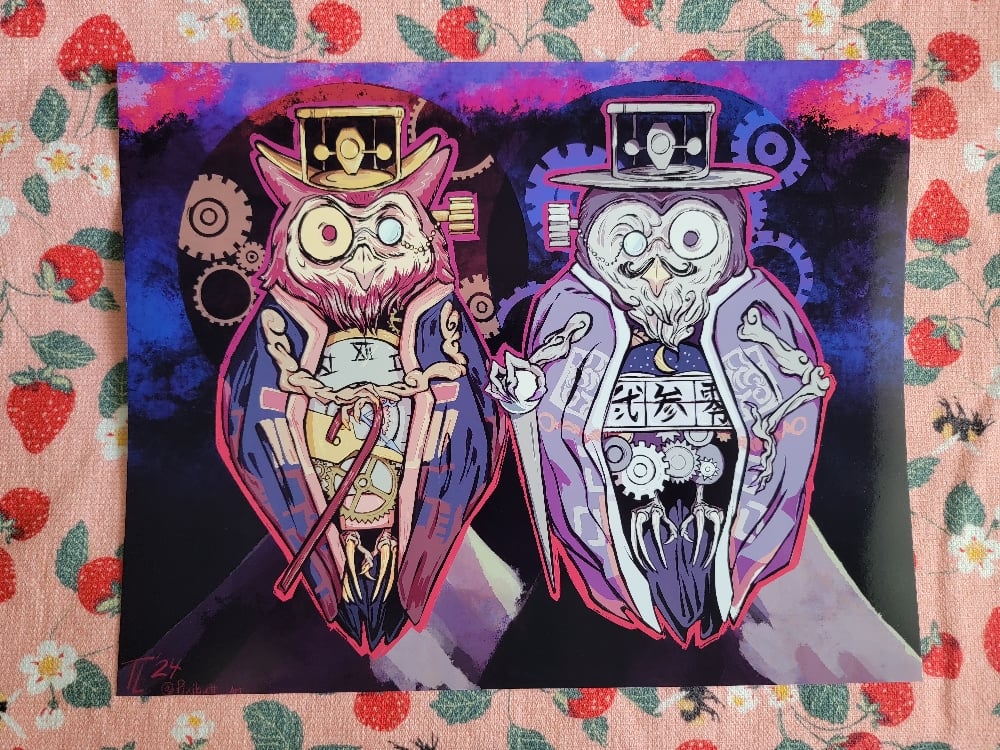 8X10" print of the twin demon owls Lechku & Nechku printed on glossy photo paper.
