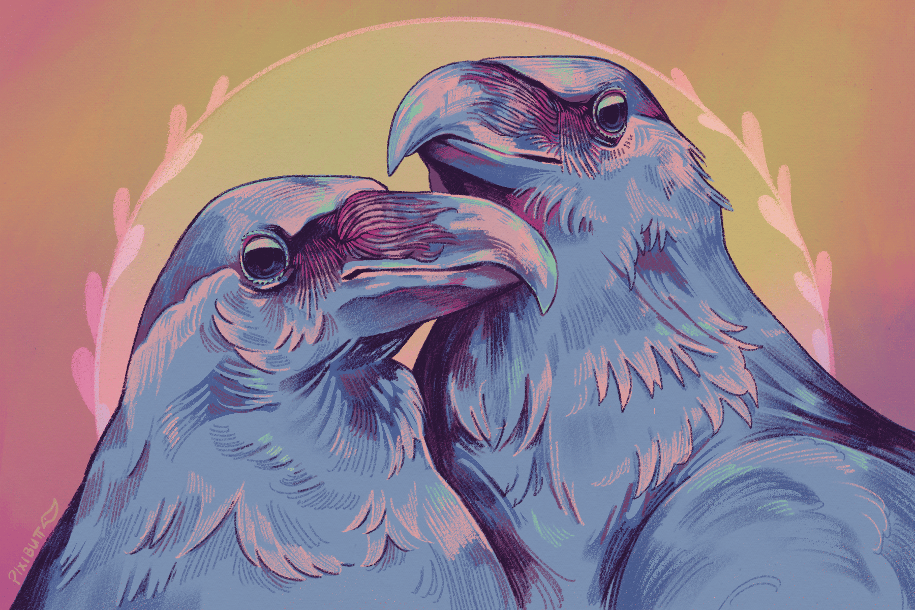 4X6 inch print of two ravens on satin photo paper.