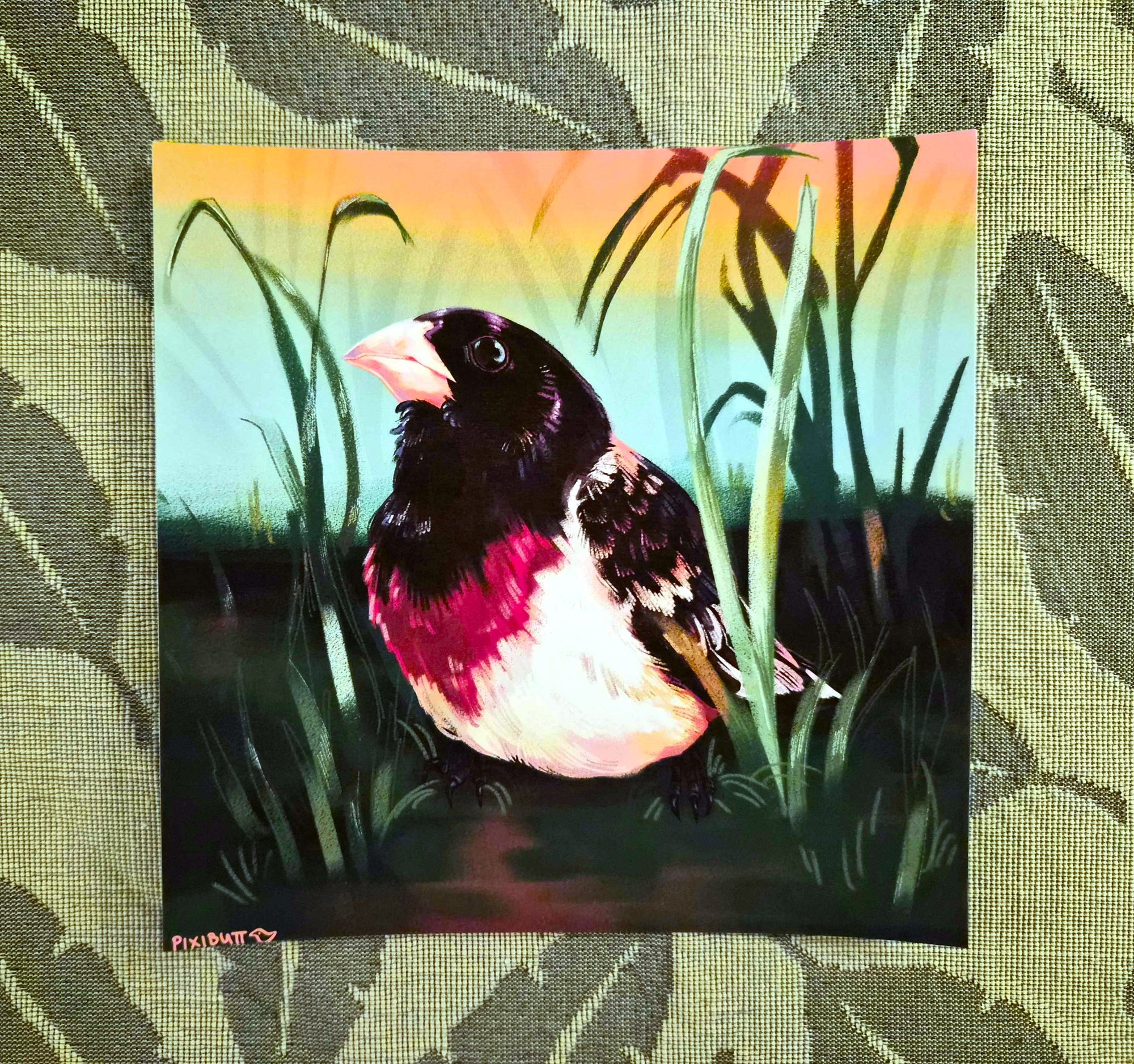 6x6 print of my Rose-Breasted Grosbeak drawing, on Red River ultrapro satin photo paper.